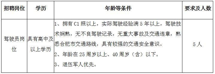 現(xiàn)因2019年度合肥市市場監(jiān)督管理局根據(jù)工作需要和合肥市市場監(jiān)督管理局政府購買駕駛員崗位服務控制數(shù)空缺情況,面向社會公開招聘政府購買駕駛員崗位工作人員5名。